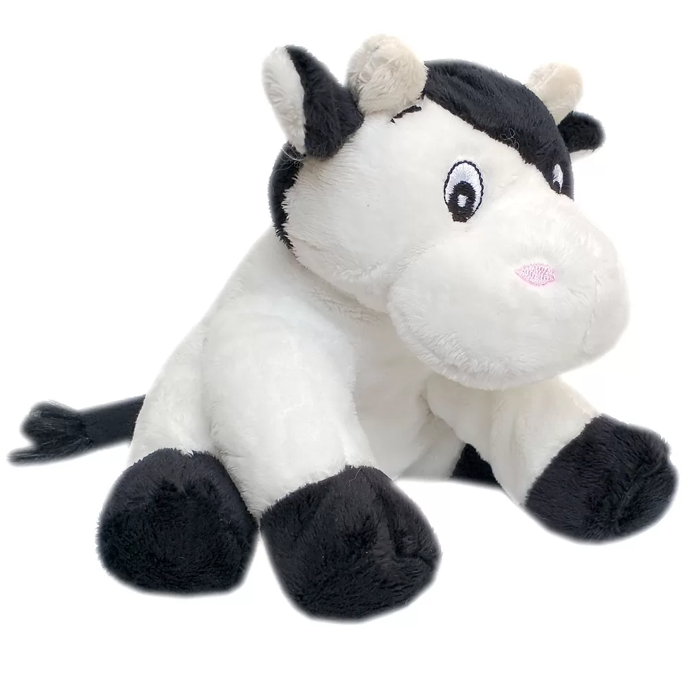 Confeccionada com pelúcia macia e enchimento em fibra siliconada, oferece um toque suave e muito conforto. Seu tamanho compacto e visual simpático tornam essa vaquinha uma companhia adorável para crianças e adultos.